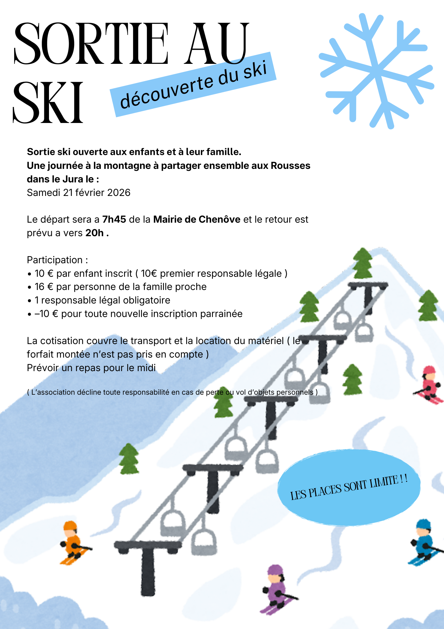 Nous avons le plaisir de vous annoncer l’organisation d’une sortie ski le 21 février 2026 ! Cette journée sera l’occasion de profiter de la montagne,…